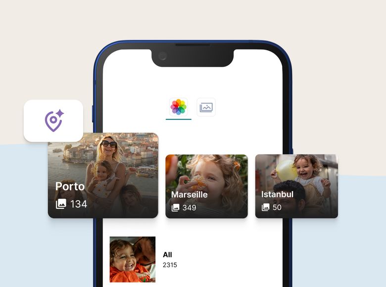 Fini le scroll infini... Notre outil repère les photos de vos dernières vacances dans votre galerie et les glisse direct dans des albums prêts à l’emploi pour votre livre photo. C'est pas smart, ça ?