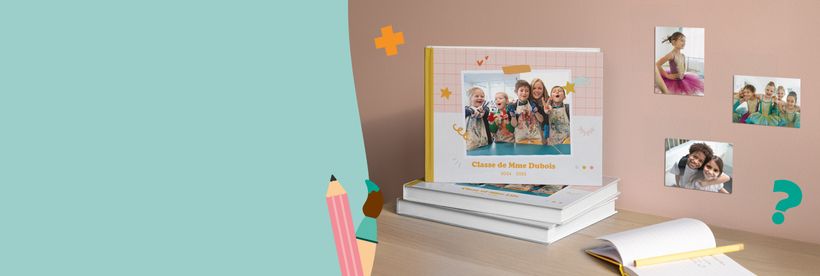 Notre reco : gardez un peu de place dans le livre photo de classe pour que les copains puissent ajouter leurs petits mots perso.Créer un album photo de classe, c’est encore mieux quand tout le monde y met du sien, alors faites participer vos minis. Rassemblez les activités du mercredi après-midi, les victoires (et les défaites mémorables) du club de foot, ou encore les moments forts de la cour de récré jusqu’à l’amphi. Avec un bel album photo de classe, gardez une trace de chaque instant, de la maternelle à la terminale.